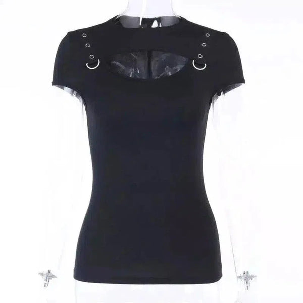 Damska koszulka w stylu gotyckim z metalowymi akcentami