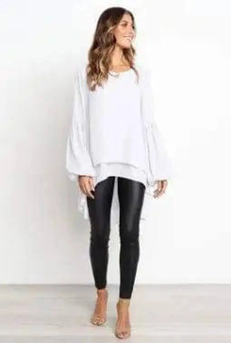 Top damski z nieregularnymi rękawami i okrągłym dekoltem