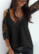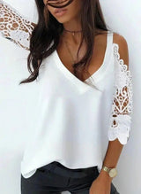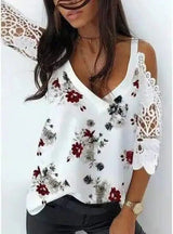 Patchworkowy koronkowy top szyfonowy z rozcięciami na ramionach