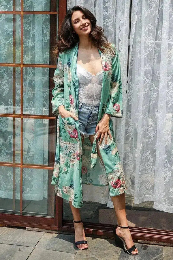 Długie okrycie w stylu kwiatowego kimona