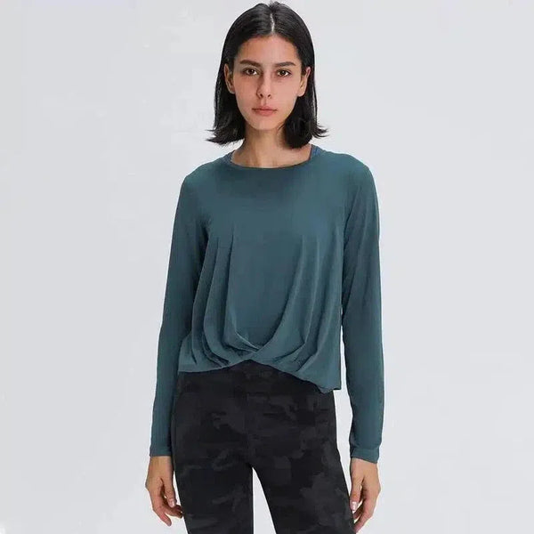 Damska drapowana bluzka z długim rękawem do pracy
