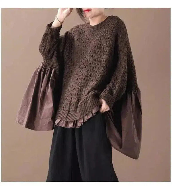 Damski sweter z rękawami balonowymi z dzianiny na drutach