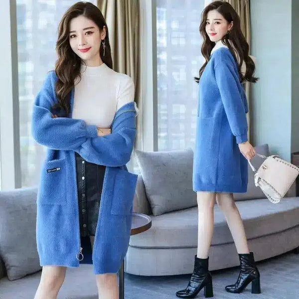 Damska dzianinowa sukienka kardigan z długim rękawem