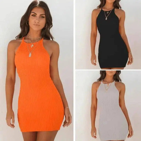 Prążkowana mała sukienka na szelkach