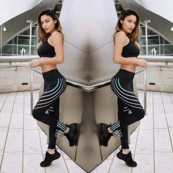 Legginsy sportowe do jogi z nadrukiem Laser High Waist Skinny