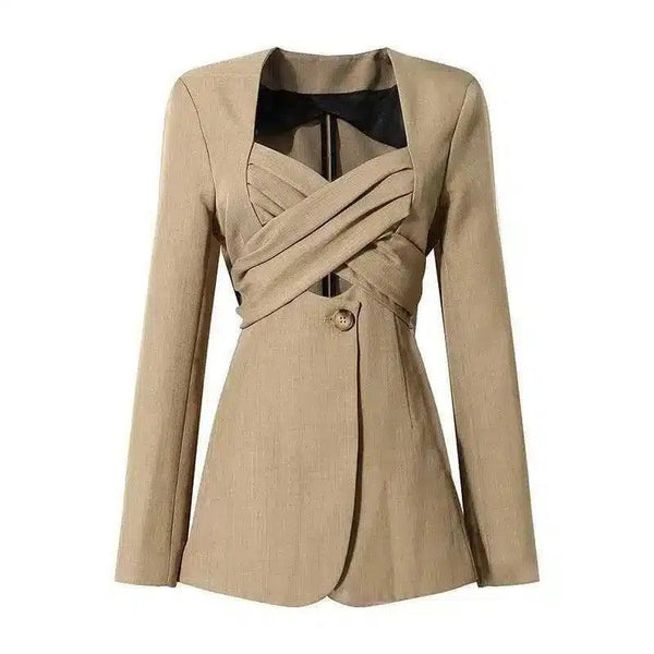 Damska marynarka zapinana na guziki z unikalnym kołnierzykiem