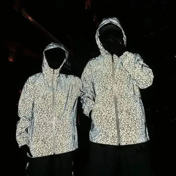 - Przyciągający wzrok materiał odblaskowy: Te kurtki są wykonane z odblaskowego materiału o wysokiej widoczności, który świeci jasno pod światło, idealny do bezpieczeństwa w nocy i wyróżniającej się mody ulicznej.
