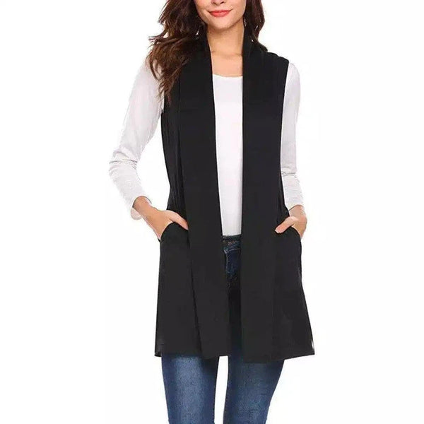 Długa kamizelka bez rękawów z kieszeniami dla kobiet