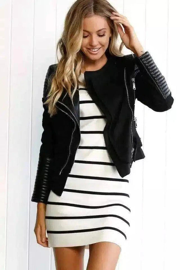 Zamszowa kurtka damska ze sztucznej skóry czarny płaszcz moto punk