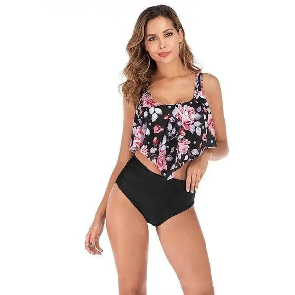 Split Swimsuit Women Printed High-Waist Bikini Ruffled