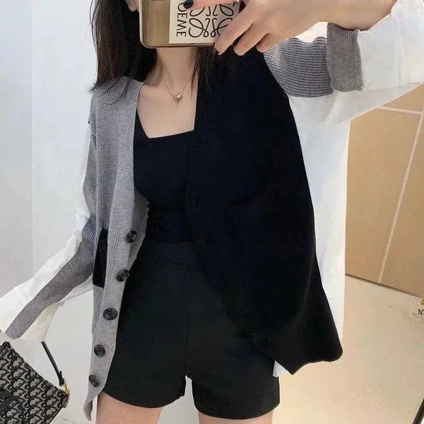 Damski casualowy kardigan i szorty zapinane na guziki