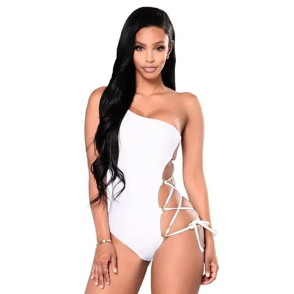 Opis produktu: One-Shoulder Bikini Swimsuit with Hoop Cross Strap
