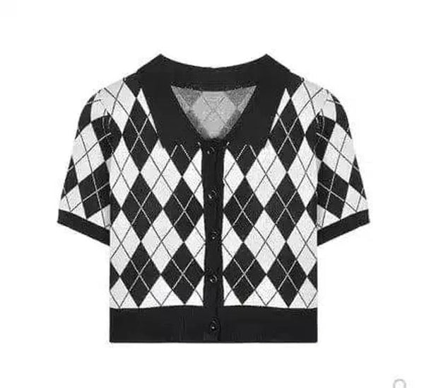 Dzianinowy kardigan w kratę z krótkim rękawem