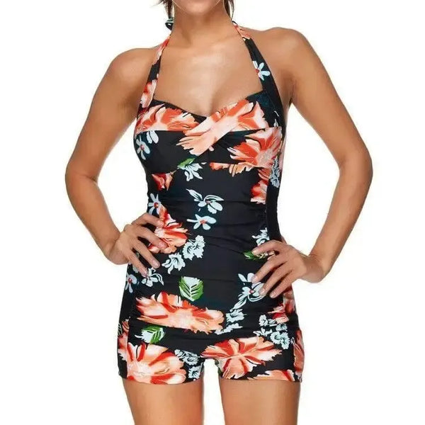 Letni damski jednoczęściowy plisowany kostium kąpielowy z dekoltem w szpic