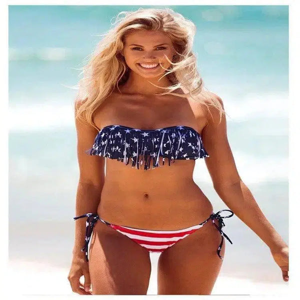 - Design: Przyciągający wzrok nadruk flagi z frędzlami dla żywego plażowego wyglądu .