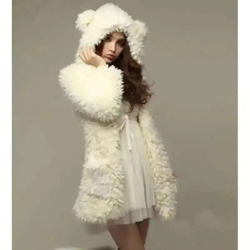 - Luksusowa faktura sztucznego futra: Wejdź w zimę z tym pluszowym płaszczem ze sztucznego futra, zaprojektowanym tak, aby oferować nie tylko ciepło, ale także wysokiej klasy wrażenia dotykowe.
