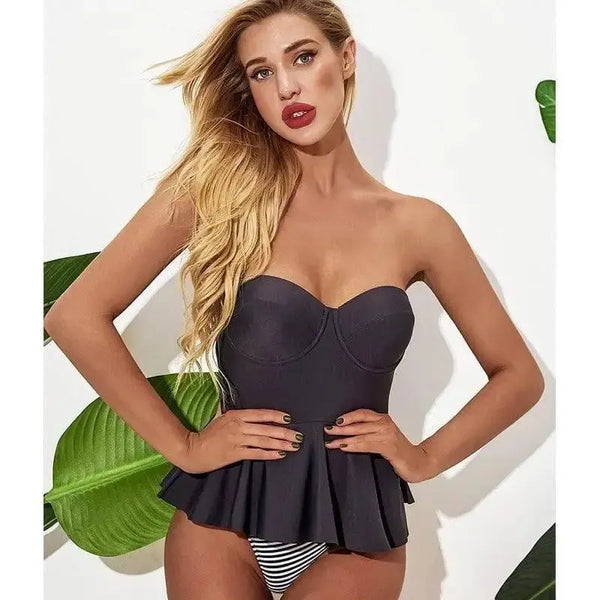 Opis produktu: Triangle Tube Top Pleated Skirt Split Swimsuit Women