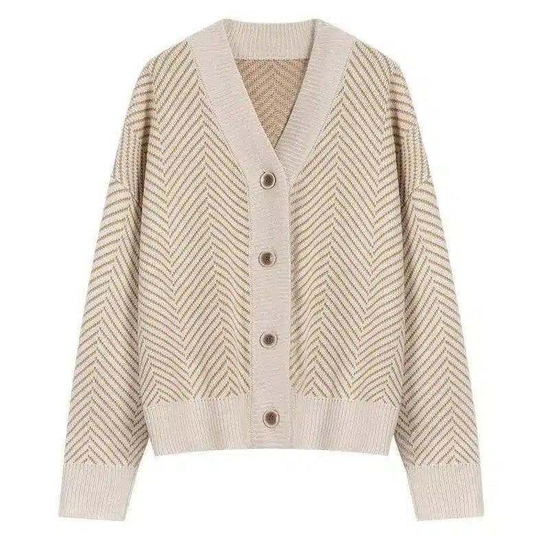 Diamentowy kardigan z dzianiny w paski z dekoltem w kształcie litery V