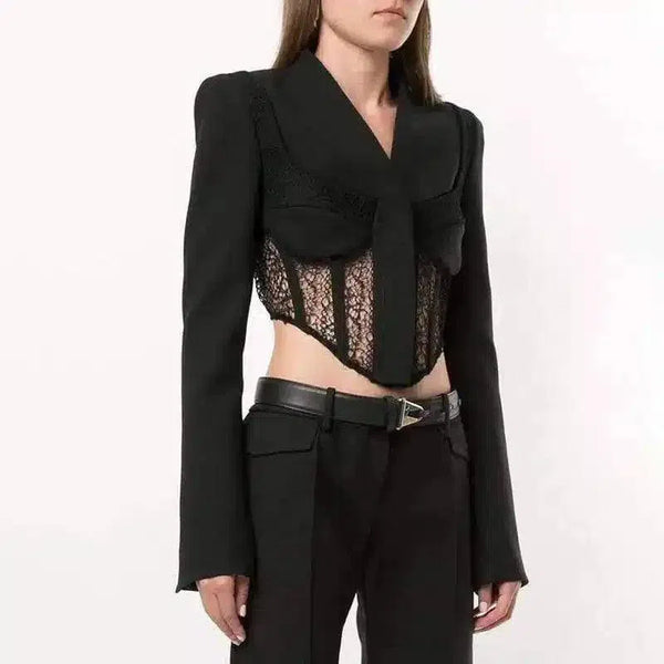 Damska przycięta marynarka z koronkowymi detalami