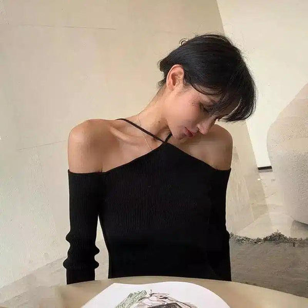 Sweter z prążkowanej dzianiny z odkrytymi ramionami