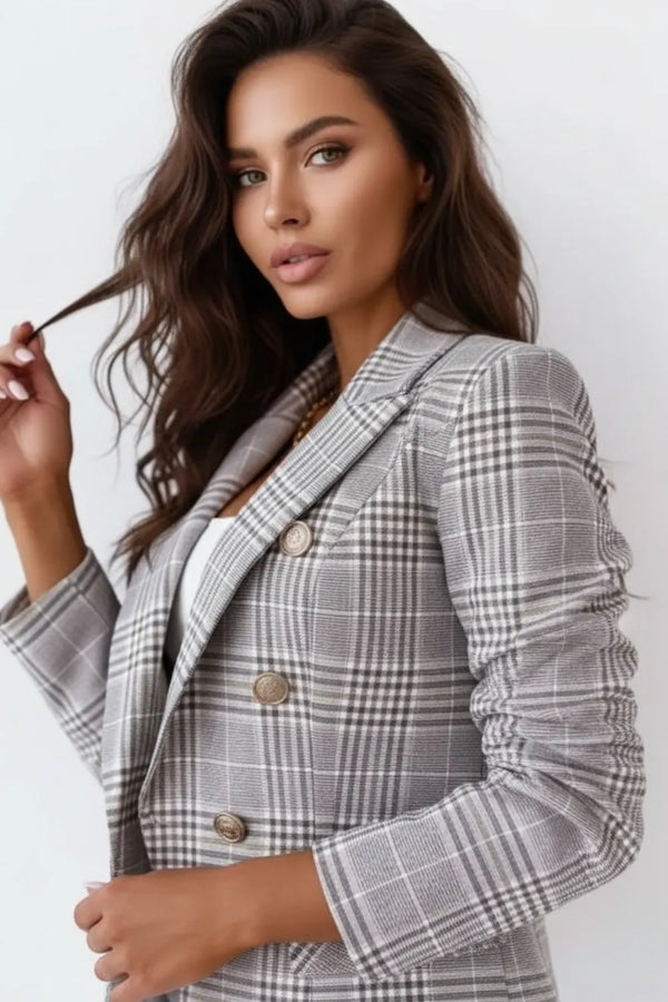 Jesienny top damski Luźna marynarka z długim rękawem w kratę