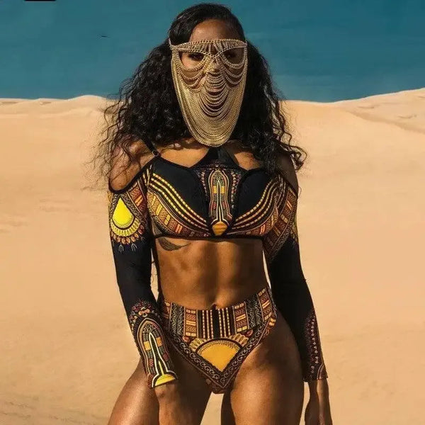 Damskie dwuczęściowe bikini z długim rękawem i wysokim stanem