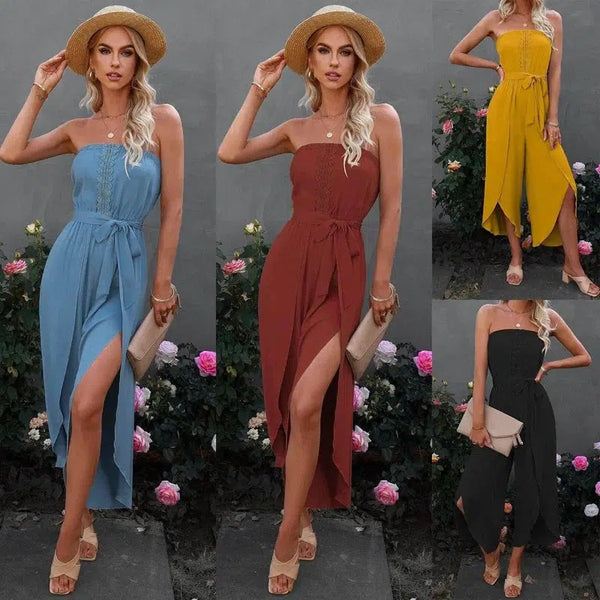 Damski letni dziewiąty luźny kombinezon z szerokimi nogawkami
