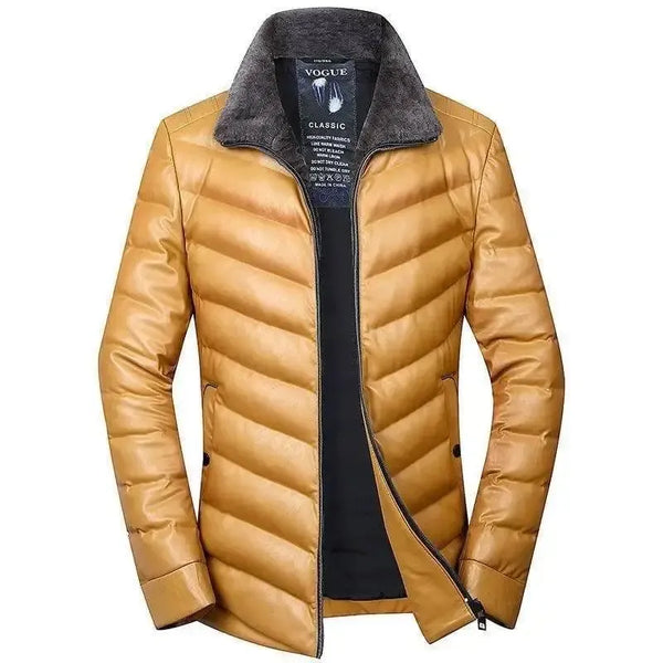Młodzieżowa skórzana kurtka puchowa z wełnianym kołnierzem i krótkim ciepłym puchem
