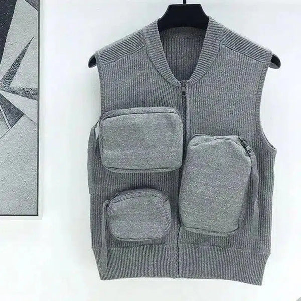 Dzianinowa kamizelka z wieloma kieszeniami do przechowywania