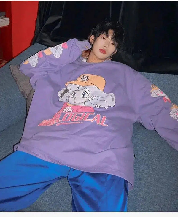 Luźna koszulka męska z długim rękawem z nadrukiem