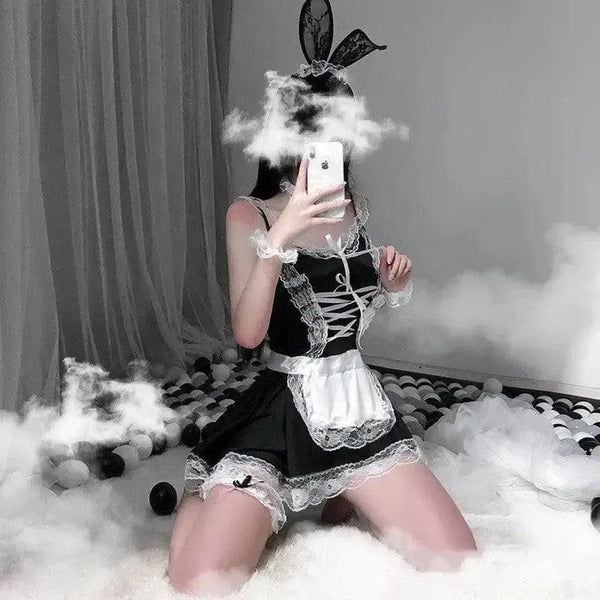 strój pokojówki z króliczymi uszami bielizna pokojówki