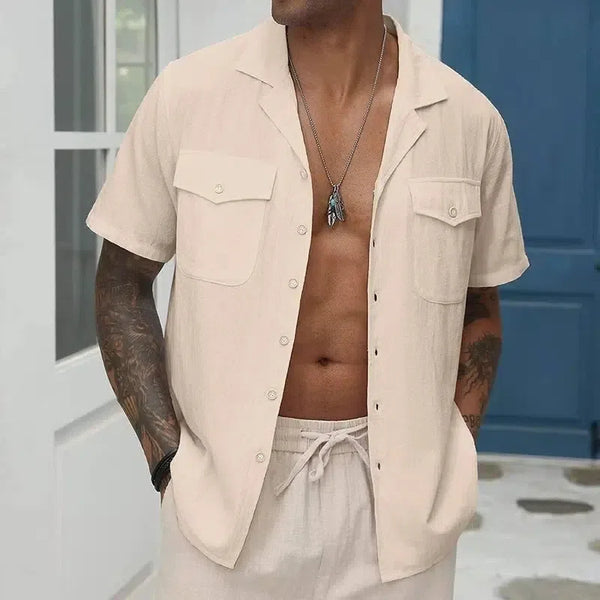 Męska luźna koszula z kieszeniami w jednolitym kolorze