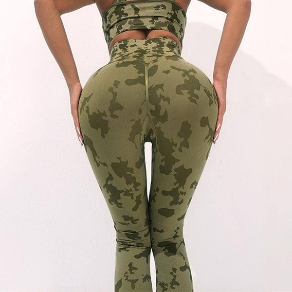 Modne spodnie do jogi z kamuflażem i wysokim stanem bez szwów