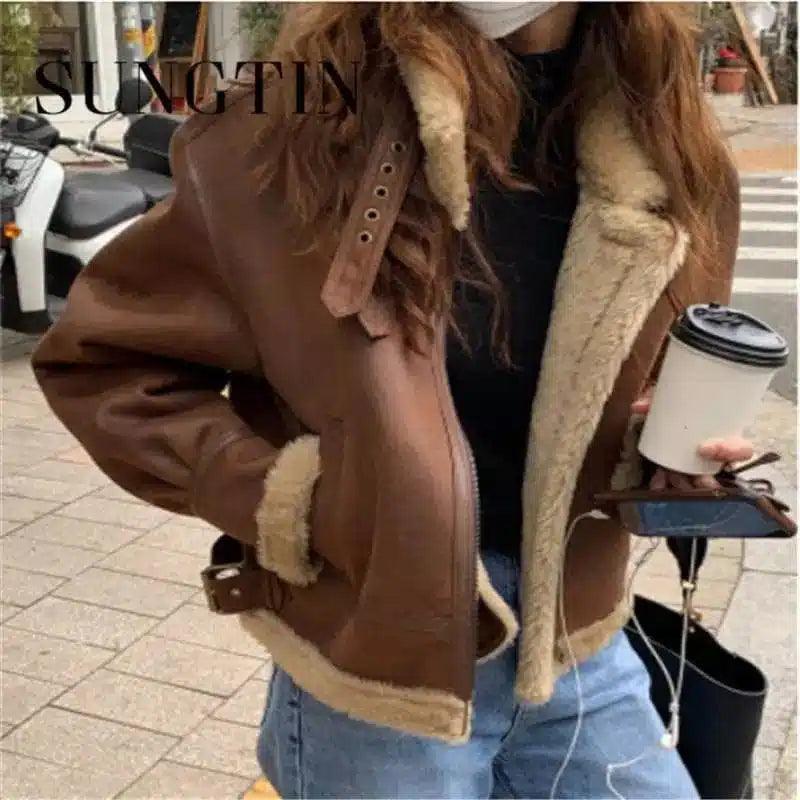 Modny duży zamek błyskawiczny futro jedno pogrubienie ciepłe