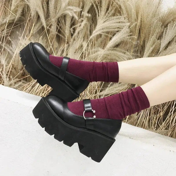 - Design: Buty na platformie inspirowane stylem retro z charakterystyczną okrągłą klamrą.