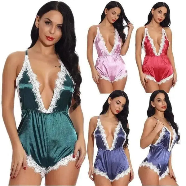 - Piżama z satynowej koronki z krzyżem na plecach .