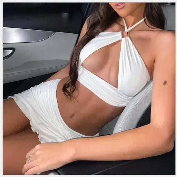 Crop Top Mini Spódniczki Dwuczęściowe Komplety Damskie Halter Top