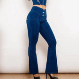 Shascullfites Melody Dark Blue Flared Lift Jegginsy z guzikami