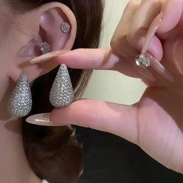 Biżuteria modowa Vintage Chunky Dome Drop Earrings Dla kobiet Błyszcząca stal nierdzewna Gruba cyrkonia inkrustowana kolczykiem w kształcie łezki Kolczyki Kobiety