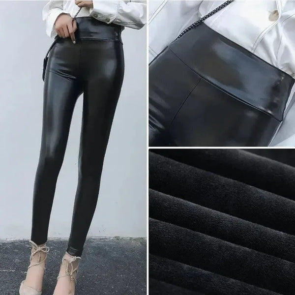 Skórzane spodnie damskie gruby duży rozmiar wysoka talia skóra PU