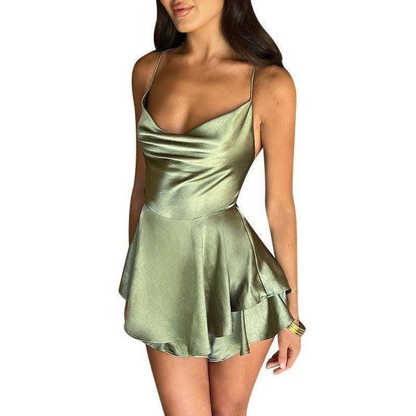 Wąska satynowa sukienka na szelkach bez ramiączek o linii A dla