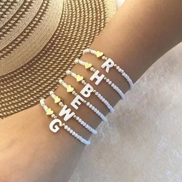 26 Litery Biała bransoletka z koralików Shell Kobiety Metalowa bransoletka Love Design Biżuteria