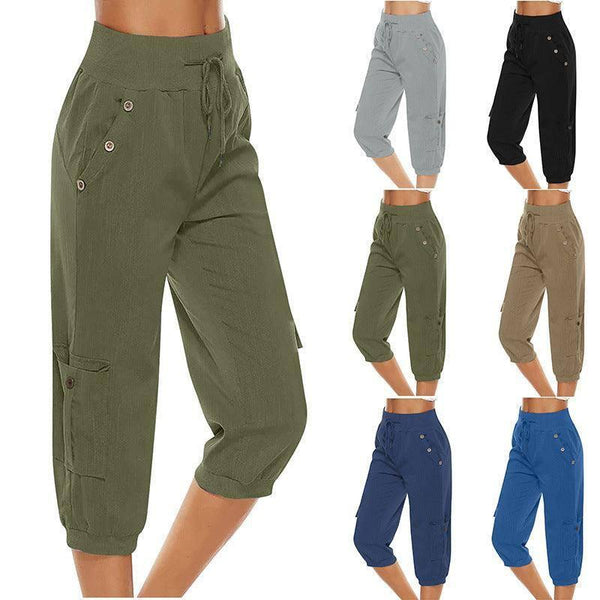 Spodnie damskie Cropped Cotton Linen Cargo Pocket Casual Pants Sapphire Blue / 2XL