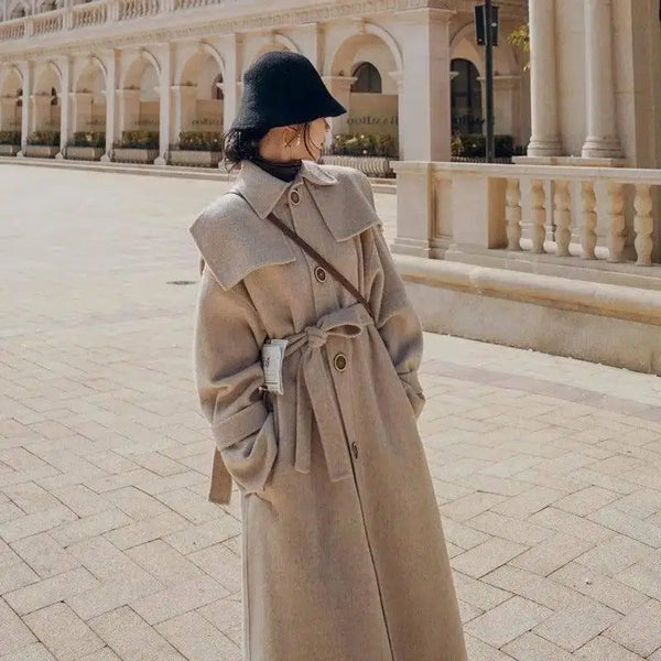 Średniej długości i mały jesienny luźny płaszcz w koreańskim stylu