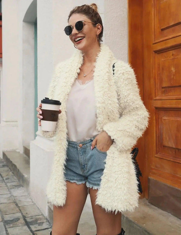 Średniej długości kurtka z długim rękawem ze sztucznego futra