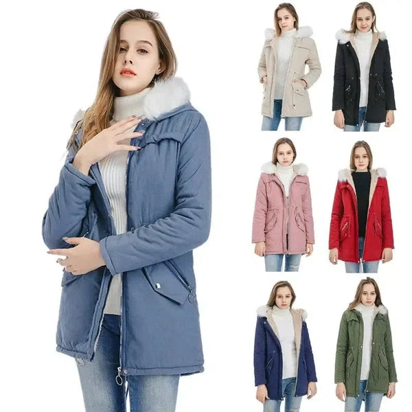 Średniej długości płaszcz z dużym futrzanym kołnierzem