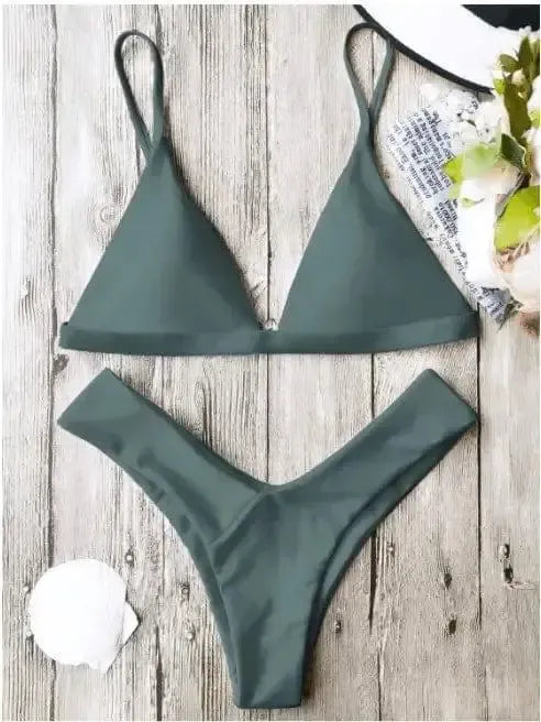 Oliwkowy zestaw bikini w trójkąty dla kobiet - Stroje kąpielowe Essentials
