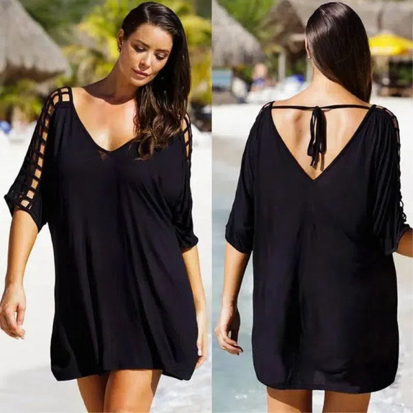 Lato Plus Size M do 3XL Nakrycie głowy Kobiety Stroje kąpielowe Bluzki plażowe Kobiety Bikini Strój plażowy Nakrycie głowy Czarna sukienka