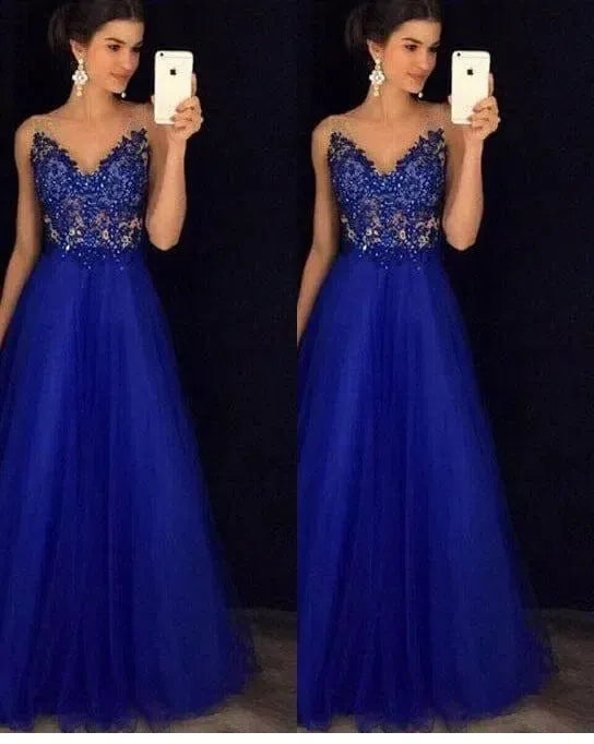 Opis produktu: Blue Chiffon Backless Beaded Ball Dress