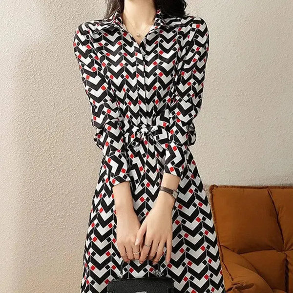 Sukienka damska z długim rękawem i nadrukiem w talii